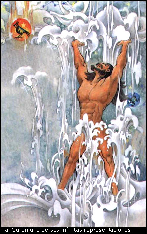 Pasaron otros 18.000 años, el cielo era más alto, la tierra más grande y PanGu continuó entre ellos como un enorme pilar de muchos millones de metros de altura, hasta estar seguro de que jamás volverían a unirse nuevamente.